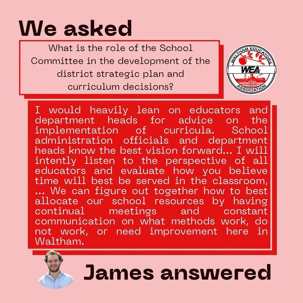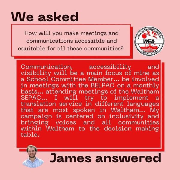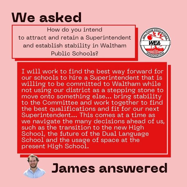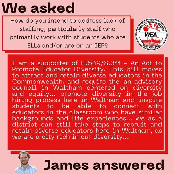 Thank you to the League of Women Voters of Waltham, WATCH CDC, and The Waltham Channel for hosting a Waltham School Committee candidates forum.